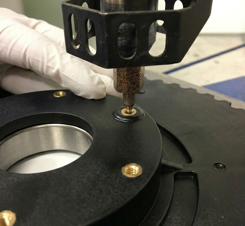 Heat staking is an assembly process that uses controlled heat and pressure to deform a plastic stud, permanently locking a secondary part (such as a metal bracket or PCB) in place.
